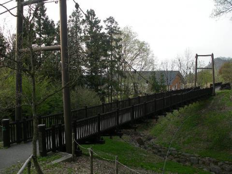 この写真は「どんぐり橋」です。クイックタイムムービーは悠創館の入り口付近でぐるっと見渡した光景です。