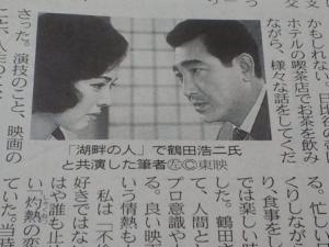 本日の日経「私の履歴書」に女優の佐久間良子さんが鶴田浩二さんとのことが書いています。新人女優の佐久間さんが東映の撮影所で初めて鶴田浩二さんに会ったとき彼はニコリともせず、その後の共演中もセリフ以外は一言も話をしてくれずかなり不安定になったよう。ところがある日「お茶でも飲まないか」と誘ってくれ恋に落ちたと。佐久間さん曰く「大人の恋のかけ駆け引きだったかもしれない」と。