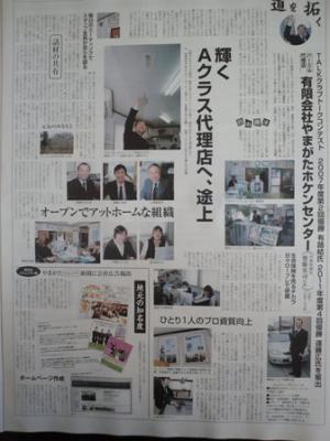 昨日の午後、宅急便にて小包が届きました。送り主は日新ニュース編集部。5月に取材を受けていました。7月は日新火災の創立記念の月。毎月発行される日新ニュースもワイド版としてカラーで印刷されています。その第2面いっぱいに当社の記事が載っていました。「輝くAクラス代理店へ、途上」と当日の会話の内容が書かれています。これからも日本一オープンなAクラス保険代理店を目指します。