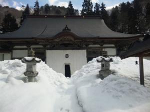 昨日お伺いしたお客様は村山市でご住職をしておられます。境内に入ると本堂の前にはドッサリの雪。周りの建物も屋根まで雪が積みあがっています。毎年冬の間はご住職と奥様で屋根の雪と地面からの雪がつながらないよう雪崩しをされているとのこと。しかし今年はそれでも追いつかずいろいろなところに損傷が。建物全体の損傷は雪が解けた頃、4月中旬に改めて確認することに致しました。