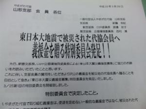 昨日、損害保険代理業協会山形支部にて会員への支援金を送るための打合せが行われました。被災地で保険代理業をしている人たちは、自分の事務所が倒壊し、その復興業務やお客様への保険金支払手続きに奔走しています。それらに加え、建物や自動車が消失したためにそれらに付けていた保険の解約の手続きも多数発生しているとのこと。その困難な状況は容易に想像することができません。