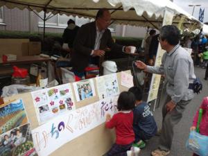 昨日の日曜日、震災後仮設住宅に住む人たちに届けようと作った梅ジュースを持って、宮城県石巻市の「かほく産業祭」に参加。来場者に梅ジュースのお湯割りを提供。開会式では「みちのく福幸応援団」とご紹介いただきました。一口飲んだ人たちから「オッ、ウマイ」という声が。作り方を詳しく聞く人やも。震災時のお話などもお伺いしました。隣の山形県河北町の芋煮のコーナーも賑わっていました。