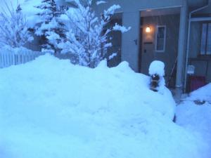 今朝は山辺町でこの冬一番の降雪。6時前に外に出て雪かき作業。4時半に通った除雪車のあとにもすっかり新雪がたまっています。車の上の雪をかき落すとその雪で車が埋まってしまう始末。それら雪を玄関前の植木スペースに移動。その背丈は人間の頭ほどまでに。スノーダンプとスコップを使っての朝飯前の作業で一汗。妻は通勤が1時間半になるからとポットにお茶を詰めて出て行きました。