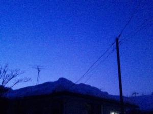 今朝6時に手袋をし帽子をかぶり完全武装しながら外に出てみると、久しぶりの快晴。夜明け前ですが空には一点の雲もありません。南東の空をみるとコウコウと光っているものが。あまりの明るさに飛行機か?と思ったのですが動かず。金星のよう。他の星は全く見えないのに。バットの素振りや懸垂をしモーニングトレーニングが終わる頃、金星は幻想的に美しい夜明けの空に消えていきました。