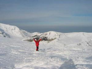 昨日の日曜日、友人2人と蔵王のお釜まで山スキーで登りました。まず坊平ゲレンデのリフトを2本乗ります。そこからスキーにシールをつけて登ること30分、小田ノ神の避難小屋に到着。入口の雪かきをしてからインスタントラーメンで昼食。そこから1時間登ったところにお釜があります。10年ぶりの冬のお釜です。昨日は月山や朝日連峰がくっきりと見える快晴。しかも樹氷が大きく育っていました。