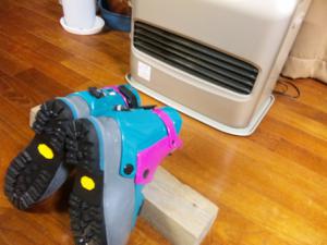 10年ぶりに冬のお釜まで行き今日で2日目。体に痛みが出る頃かと思っていたのですが今のところ何の異常もありません。毎朝のトレーニングの効果かもしれません。ただ、足の内側のくるぶしの下に痛みが。靴があたり圧迫されたのでしょう。そこで靴の内側、圧迫部分につっかえ棒を入れ、外の金具を締めファンヒーターの前に置くことに。強化プラスチックとはいえ一週間もすれば少しは広がるだろうと。