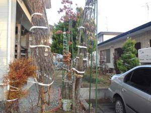 昨日の日曜日、庭木と裏口の雪囲いをしました。時間がとれずのびのびになっていたのですが、朝からの好天に感謝し午前9時半に作業を始め午後4時まで。庭木の雪囲いには昨年購入したビニールロープを使用。伐採した立木の片付けなど予想以上に時間がかかりました。終了後に選挙投票のため近江公民館に。夜、テレビを見ていると自民党圧勝。3年前の民主党大勝の反動が出たかのよう。