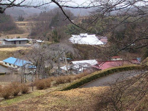 後ろの山から滝桜を見てみました。近くには民家もあります。シーズンの時には、この方たちの生活はどうなるのだろうかと心配になりました。