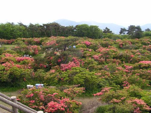 山頂の展望台から見下ろすと、ごらんの通りヤマツツジで埋め尽くされています。