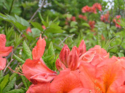 次にはレンゲツツジが満開、上の方ではイワカガミ、マイズルソウ、コケモモ、ハクサンチドリ等々多くの高山植物が咲いていました。詳しくは「野の花」をご覧下さい。