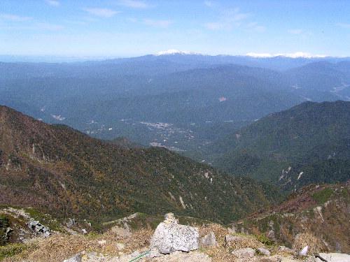 北西には北アルプス。左が乗鞍岳、右が穂高岳やその他の山です。