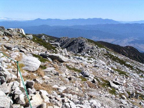 北東には左から浅間山、蓼科山、八ヶ岳連峰、一番高い山が赤岳です。