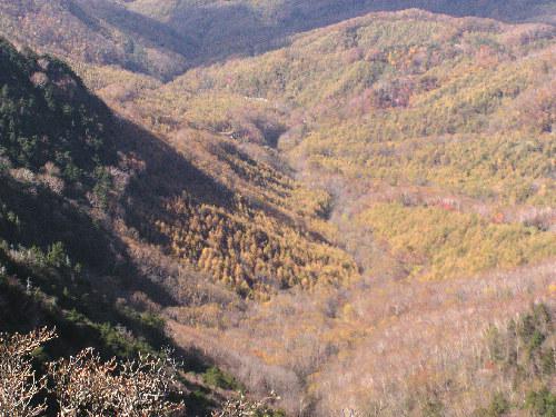 西には登山口の皇海橋、カラマツの黄葉が綺麗です。