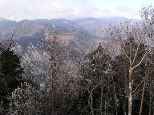 山頂はダケカンバなどの木立があり絶景とはいえません。南の方から雲が出始め富士山はもう見えません。西の方には甲武信岳などの奥秩父の山が見えました。