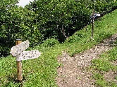 ここから山頂までは直ぐです。笹の原を登ります。