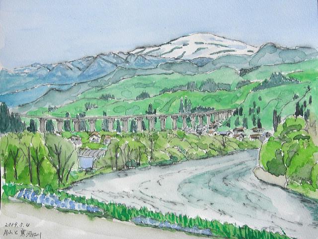 テニスクラブの仲間で同郷でもある「ふうさん」から5月の大型連休の時に寒河江へ行ってスケッチをしてきたという雪を被った月山の水彩画が届きました。この他の絵は「やろこのHP」の「みどり画廊」の水彩の部をご覧下さい。