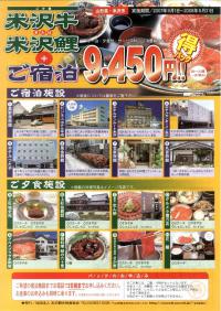 「米沢牛・米沢鯉宿泊マル得パック」が9月1日(土)より、新しくスタートいたします! これは、市内のホテル、旅館に宿泊して、米沢牛か米沢鯉の夕食を指定の食事処から選んで、宿泊と夕食をあわせて9,450円という大変お得なパックです! すべて観光物産協会会員のお店ですので安心で安い! 旅行だけでなく、ぜひビジネスで米沢にお越しの方もご利用下さい! 期間は9月1日(土)より平成20年8月31日まで pdfファイル 1枚目表紙 pdfファイル 2枚目裏面 注意事項 ◇1室1名様よりご利用いただけます。 ◇宿泊は8軒のホテル、旅館よりお選び下さい。夕食は8軒よりお選び下さい。 ◇マル得パック以外の酒類、料理、その他のサービス等を追加された場合には ご利用店にて別途ご精算いただきます。 ◇お盆、正月、まつり催事開催時などの繁忙期にはお断りする場合もございます。 ◇ご予約はご旅行日の2日前までにお願いいたします。 ◇現金のみのお取り扱いとさせていただきます。 キャンセルについて ◇キャンセルが発生した場合にはそれぞれの宿泊施設の規定によります ...もっと詳しく |