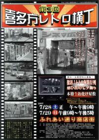 この喜多方レトロ横丁は今年で3回目のお祭ですが、喜多方のふれあい通り商店街 が昭和30年代のレトロな雰囲気で再現され、昔懐かしい横丁へと様変わりする 楽しいおまつりです。 ゆかた姿のお客様に、お店の人もみんな昭和のレトロな雰囲気でお出迎えします。 米沢からは、扇屋牛肉店の牛串焼き、虎屋菓子店のお菓子 おたまやの味噌商品、田舎やのだんご、揚げ餅、幸林工芸の槐木工製品など 今年は「復活!レトロ仮装行列」 二丁目夕焼けコンサート・本格!お化け屋敷など その他レトロモーターショーやレトロ盆踊りなどの楽しい催しもたくさん。 ゆかたの無料レンタルもございます。 ぜひこの懐かしいお祭にお越し下さい! ...もっと詳しく |
