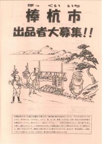 伝国の杜広場におきまして 棒杭市を開催いたします。 出品していただける方を募集しております。 チラシをご覧いただきぜひご参加ください。 棒杭市とは、上杉鷹山公の時代におこなわれていた無人販売 (小説上杉鷹山下巻より) 「道の端に数本の杭が立っている。それぞれ笊がひもで吊るされ、笊の中には、にぎりめし、栗、干し柿、野菜、火うち石、合羽、笠などの生活や旅の必需品が入っていた。売れたらしく、金が入っている。・・・米沢の人間はもちろん、旅で通りすぎる人間も、誰ひとりとして、この笊の中からだまって品物を盗んで行く人間はおりません。もう棒杭にさえ、嘘をつかないのです。棒杭を人間と同じように信じているのです。あなたの一番の改革は、人間をこのように変えたことです。 人の心に、信じあう心を甦らせたことです。」 この度、全国まちづくりシンポジウムの開催に合わせ、棒杭市を再現します。 申込書は下の米沢市ホームページよりダウンロードしてご利用ください。 http://www.city.yonezawa.yamagata.jp/shisei/shokou/bokkui/bokkuitop.html ...もっと詳しく |