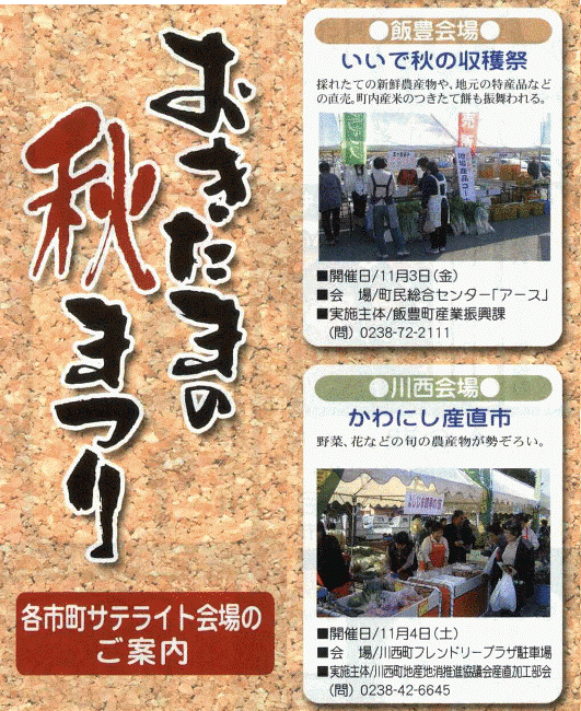 三越仙台店141ビル地下催事場におきまして 第14回米沢の観光と物産展が開催されます。 旬の特産品をどっさりとお持ちして開催いたしますので、ぜひご来場下さい! 主な出展物紹介 米沢牛 牛肉どまんなか弁当(新杵屋) 米沢鯉(米沢鯉六十里) 米沢牛コロッケ カレーパン りんご ラフランス 米沢ラーメンなど (上杉城史苑) もろみ味噌、甘酒(おたまや) うまいたれ、漬物(平山孫兵衛商店) このチラシをプリントアウトしてお持ちのお客様に、米沢の特産品をプレゼントいたします。 ぜひご来場ください! |