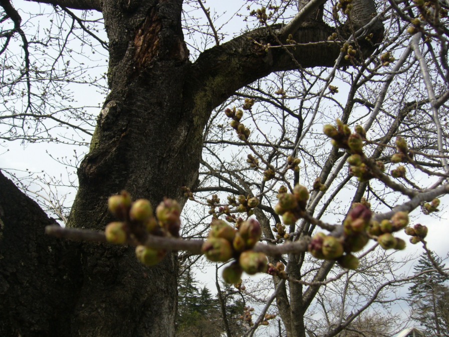つぼみはまだ固いですが、ところどころ色づいてきたのがわかりますでしょうか あさっては気温20度を超えるとの予報。 暖かくなれば一気に進みますね。