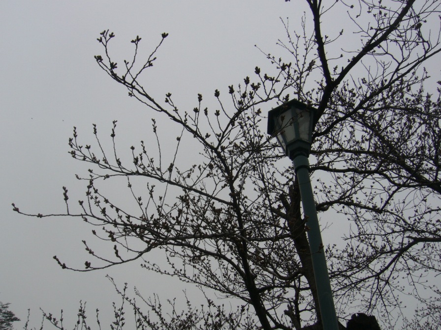 載せてみます。 シルエットしかわからないですが・・・ 満開になればいいアングルになりますね。 「街路灯と桜」