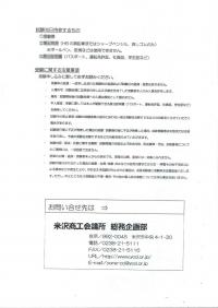 ¡¼õ¸³É¼ ¢É®µÍѶñ¡ÊHB¤Î¹õ±ôÉ®¤Þ¤¿¤Ï¥·¥ã¡¼¥×¥Ú¥ó¥·¥ë¡¢¾Ã¤·¥´¥à¤Î¤ß¡Ë ¢¨¥Ü¡¼¥ë¥Ú¥ó¡¢Ä구¤Ê¤É¤Ï»ÈÍѤǤ¤Þ¤»¤ó¡£ £¿Èʬ¾ÚÌÀ½ñ¡Ê¥Ñ¥¹¥Ý¡¼¥È¡¢±¿Å¾Ìȵö¾Ú¡¢¼Ò°÷¾Ú¡¢³ØÀ¸¾Ú¤Ê¤É¡Ë ¼õ¸³¤Ë´Ø¤¹¤ëÃí°Õ»ö¹à ¼õ¸³¿½¤·¹þ¤ß¤ËºÝ¤·¤ÆÉ¬¤º¤ªÆÉ¤ß¤¯¤À¤µ¤¤¡£ ¡¦¼õ¸³ÎÁ¤ÎÊÖ´Ô¡§°ìÅÙ¿½¤·¹þ¤Þ¤ì¤¿¼õ¸³ÎÁ¤ÎÊÖ´Ô¤ª¤è¤Ó»î¸³Æü¤Î±ä´ü¡¦Êѹ¹¤Ï¤¢¤ê¤Þ¤»¤ó¡£ ¡¦Æþ¾ìµö²Ä¡§»î¸³²ñ¾ì¤Ë¤Ï½êÄê¤Î¿½¤·¹þ¤ß¼ê³¤¤ò´°Î»¤·¤¿¼õ¸³¼ÔËÜ¿Í¤Î¤ßÆþ¾ì¤òµö²Ä¤·¤Þ¤¹¡£ ¡¦Ãٹ»î¸³³«»Ï¸å¤Î»î¸³²ñ¾ì¤Ø¤ÎÆþ¾ì¤Ï¸¶Â§¤È¤·¤ÆÇ§¤á¤Þ¤»¤ó¡£ ¡¦ËܿͳÎǧ¡§¼õ¸³¤ËºÝ¤·¤Æ¤ÏËܿͤ¬³Îǧ¤Ç¤¤ë¿Èʬ¾ÚÌÀ½ñ¡Ê¥Ñ¥¹¥Ý¡¼¥È¡¢±¿Å¾Ìȵö¾Ú¡¢¼Ò°÷¾Ú¡¢³ØÀ¸¾Ú¤Ê¤É¡Ë¤ò·ÈÂÓ¤·¤Æ¤¯¤À¤µ¤¤¡£ ¡¦»î¸³Ãæ¤Î¶Ø»ß»ö¹à¡§»î¸³Ãæ»î¸³°Ñ°÷¤Î»Ø¼¨¤Ë½¾¤ï¤Ê¤¤¼Ô¤Ï¼õ¸³¤ò¤ªÃǤꤹ¤ë¤Ê¤É¤ÎÂбþ¤ò¤È¤é¤»¤Æ¤¤¤¿¤À¤¯¾ì¹ç¤¬¤¢¤ê¤Þ¤¹¡£ ¡¦»î¸³»Ü¹Ô¸å¤ËÉÔÀµ¤¬È¯³Ð¤·¤¿¾ì¹ç¤ÎÁ¼ÃÖ¡§»î¸³»Ü¹Ô¸å¤ËÉÔÀµ¤¬È¯³Ð¤·¤¿¾ì¹ç¡¢Åö³º¼õ¸³¼Ô¤Ï¼º³Ê¤Þ¤¿¤Ï¹ç³Ê¤ò¼è¤ê¾Ã¤·¡¢º£¸å¤Î¼õ¸³¤ò¤ª ÃǤꤹ¤ë¤Ê¤É¤ÎÂбþ¤ò¼è¤é¤»¤Æ¤¤¤¿¤À¤¤Þ¤¹¡£ ¡¦»î¸³ÆâÍÆ¡¦ºÎÅÀ¡¦¹ç³Ê¤Ë´Ø¤¹¤ë¼ÁÌä¡§»î¸³ÌäÂê¤ÎÆâÍÆ¤ª¤è¤ÓºÎÅÀÆâÍÆ¡¢ºÎÅÀ´ð½à¡¦ÊýË¡¡¢¹ç³ÊÈÖ¹æ¤Ë¤Ä¤¤¤Æ¤Î¤´¼ÁÌä¤Ë¤Ï¡¢°ìÀÚ²óÅú¤Ç¤ ¤Þ¤»¤ó¡£ ¡¦Åú°Æ¤Î¸ø³«¡¦Êֵѡ§¼õ¸³¼ÔËܿͤ«¤é¤Îµá¤á¤Ç¤â¡¢Åú°Æ¤Î¸ø³«¡¢ÊֵѤˤϰìÀÚ±þ¤¸¤é¤ì¤Þ¤»¤ó¡£ ¡¦»î¸³¤¬»Ü¹Ô¤µ¤ì¤Ê¤«¤Ã¤¿¾ì¹ç¤ÎÁ¼ÃÖ¡§ÂæÉ÷¡¦ÃϿ̡¦¹¿¿å¤Ê¤É¤Î¼«Á³ºÒ³²¤Þ¤¿¤Ï²ÐºÒ¡¦ÄäÅŤ½¤Î¾ÉԲĹ³ÎϤˤè¤ë»ö¸Î¤Ê¤É¤ÎȯÀ¸¤Ë¤è¤ê¡¢¤ä ¤à¤ò¤¨¤º»î¸³¤¬Ãæ»ß¤µ¤ì¤¿¾ì¹ç¤Ï¡¢Åö³º¼õ¸³¼Ô¤Ë¼õ¸³ÎÁ¤òÁ´³ÛÊֶ⤤¤¿¤·¤Þ¤¹¡£¤¿¤À¤·¡¢Ãæ»ß¤Ë¤È¤â¤Ê¤¦¼õ¸³¼Ô¤ÎÉÔÊØ¡¦ÈñÍÑ¡¦¤½¤Î¾¤Î¸Ä¿ÍŪ¤Ê» ³²¤Ë¤Ä¤¤¤Æ¤Ï²¿¤éÀÕǤ¤òÉ餤¤Þ¤»¤ó¡£ ¤ªÌ䤤¹ç¤ï¤»Àè¤Ï ÊÆÂô¾¦¹©²ñµÄ½ê¡¡Áí̳´ë²èÉô ½»½ê¡¿992-0045¡¡ÊÆÂô»ÔÃæ±û4-1-30 ÅÅÏá¿0238¡Ý21¡Ý5111 FAX¡¿0238¡Ý21¡Ý5116 e-mail¡¿yone-cci@ycci.or.jp URL¡¿http://www.ycci.or.jp/¡¡ |