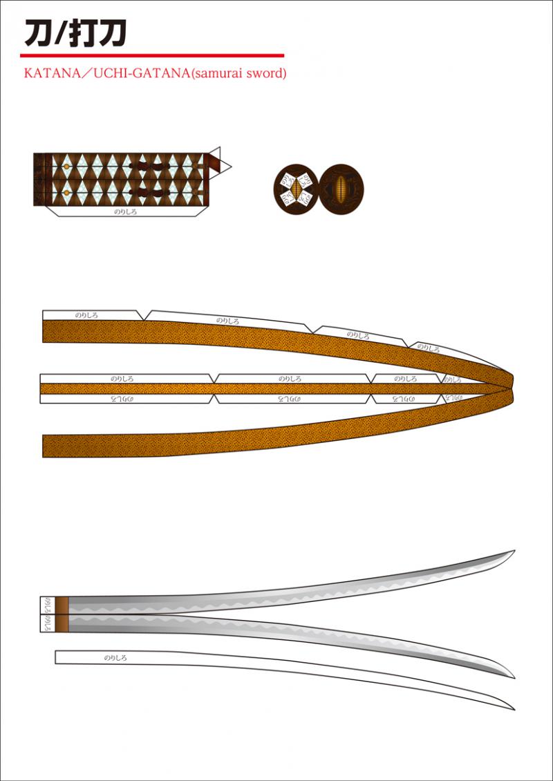 ▼「刀/打刀」「脇差」「小柄」「笄」のペーパークラフト