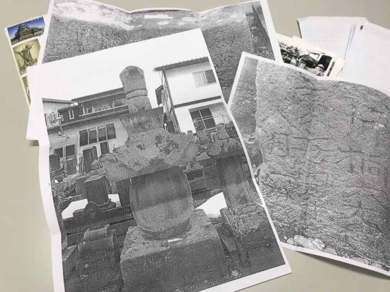 封書には巨大な五輪塔と地輪に刻まれた銘文の写真、そしてそれに係る様々な資料が同封されていました。