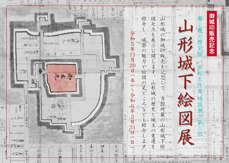 山形城の御城印販売を記念して、当館所蔵の山形城下絵図7点を展示公開し、山形城の歴史と変遷等を紹介します。