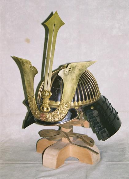 銅板で製作された三鍬形を消鍍金の技法で表面を鍍金加工