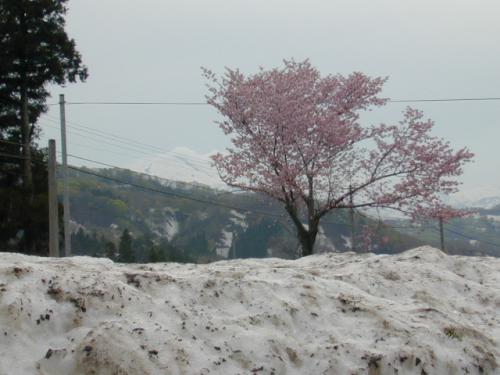 全国各地にはたくさんの桜の名所があります。置賜で言えば久保桜の桜、釜の越桜、烏帽子山の桜などなど。ここ雪だるまの里にも一足遅い春の到来!今が見ごろの桜を一挙公開。幹線道路が一本しかない雪だるまの里では車中から降りる事なくこんな桜を見る事が出来ます。ちょっぴり桜回廊風かな。では、一足遅い春の風景ご覧下さい(^^)