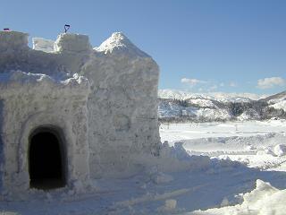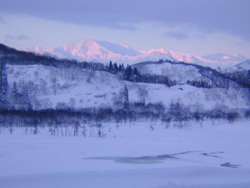 2004年冬、一週間の晩餐会も無事終了。翌日は快晴なり!飯豊山も晴れやかでした。2006年冬、今年はどんな晩餐会が待っている事やら(^^)
