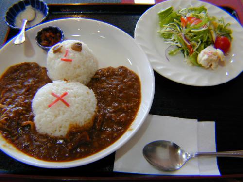 新商品、ついに食べてみまhした。ご飯が雪だるまの形をしてます。カレーのほう早速食べてみると....思ったより甘めですがどぶろくが入っているせいかコクがありました。シメジやエノキなども入って中身もGood!どぶろく味が足りない方の為にちゃんと小皿にどぶろくも付いてます。冬期間限定、是非どうぞ。