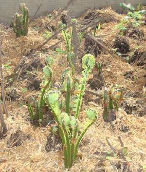 間欠泉のハウスで栽培している“こごみ”は間欠泉の近く深山より昨秋採取したものをビニ−ルハウスで促成しております。