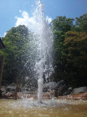 間欠泉湯の華のオ−プンは5月の連休からの予定です。