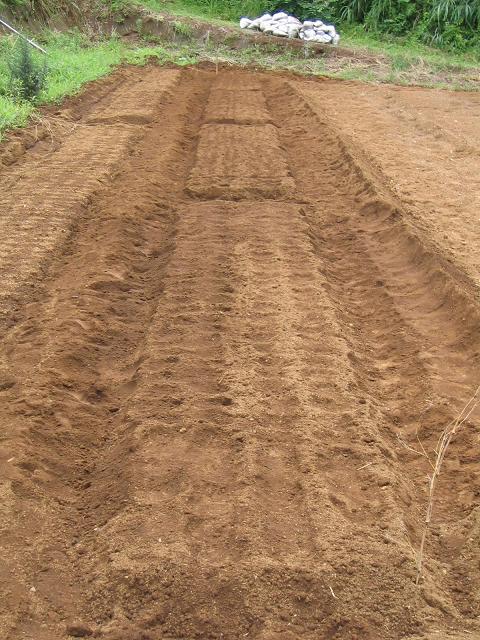 20mの畝に有機資材・ビオワンダーを投入し、畝長4.5m、畝幅80cm、畝間50cmで区切りました。