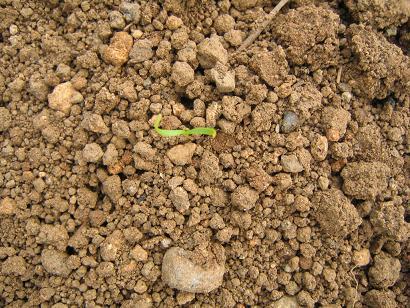 播種後7日目、各畝で発芽を確認しました。
