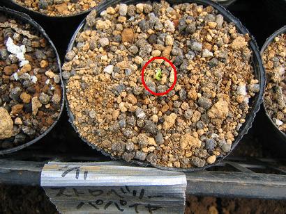 画像の中、赤い丸のところに小さな芽が見えます。