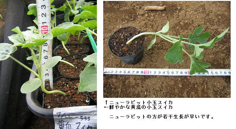 写真を見ても良く判るのですが、同じ日に播種したものでも、今ではニューラビットの方が背が高くなっています。