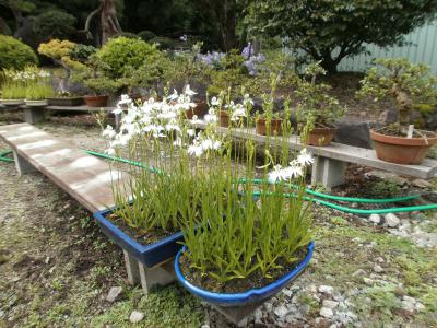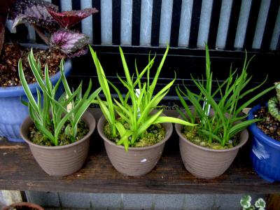 サギ草を3鉢頂きました。 向かって左より『銀河』『あけぼの』『やなぎ』 の三品種です。 昨年庭木の剪定に伺ったときには 一面に花が咲きそろっていて見事でした。 (それでも満開を過ぎていたそうですが) あまりに順調に球根が増えるので 今年は100鉢ほど小鉢に作って どこかで卸販売してもらおうかと思ったそうですが なかなか手頃な販路が見つけられずに 無料でお年寄りの集まりなどに提供したりしたそうです。 せっかく手をかけたさぎ草の小鉢なので 処分するのもしのびないとの事 園芸店などよりはお手頃な値段設定で譲っていただけるようなので お好きな方などいらっしゃいましたら 聞いてみてはいかがでしょうか? |