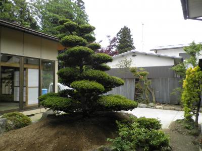 植栽は仕事を頂いた大工さんが用意した盆栽の松、