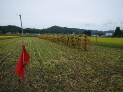 昨夜さらっと降ったようですが、日にちもないしあんまり遅くなると今度は乾燥しないので、午後からコシヒカリを半分だけ刈ることにしました。 ここの田んぼは借りて2年目。 もともと一枚の田を、2人の地主が半分ずつ区切って作っていたのですが、 現在はどちらの地主さんも出来ないので、太郎にお鉢が回ってきたのです。 ちなみに地代は2反で2万円です。 見よ!この美しい刈り跡!!(これが通常ですが、、、) 先週のモチ米刈には四苦八苦でしたが、その教訓を生かして臨んだ所、 結束ミスなし! 草巻き込みなし!(もっともここの田は夏にみんなで手除草したおかげ) 小僧も杭がけ。 杭も事前に立てていたので、半日で杭掛けまで終わりました。 あーえがったえがった。 ・・・・・・・・・・・・・・・・・・・・・・・・・・・・・・・・・・・・・・・・・・・・・ 月曜日の夜はぞーこー英会話教室。 今夜は2回目で、参加者は4名。 まかないは ナスとインゲンと春菊のパスタ じゃがいものトマト煮 カボチャとわかめと豆腐の味噌汁 ロザリーさんにもらった英語のメールを皆で読みました。 |