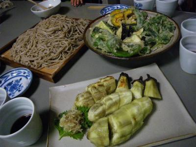 寒い! 台風の影響で雨も降り、気温も日中で17℃と 半そででは震えてしまう寒さでした。 夏季定休日の月曜日ですが、今日は臨時開店。 東京から山形に旅行にいらした御夫婦がご来店。 うちのHPを見てくださり、わざわざ立ち寄って下さったのです。 当店の蕎麦とかいもちを召し上がっていただき、喜んで頂けたようで 良かったです。 太郎が在京時代に遊んでいた、二子玉川や溝の口の話題も飛び出し 思わず盛り上がりました。 Aご夫妻、遠いところありがとうございました!! またござっとこえ〜! さーて、まかないまかない。 5日間お手伝い頂いたチョーフさんが帰京することもあり、大ごっつぉー。 親方ナスの焼きナスっす。とろけるあま〜い。 親方野菜の天ぷら ナス、ゴーヤ、しし唐、モロヘイヤ、カボチャ、オクラ (オフランスのいっつぁーん、出前してあげたいわ。。。) 3人で6人前の蕎麦を平らげ、満足満腹。 チョーフさん、今回もお世話になりました。おしょうしな!! さてさて8月もあっという間に過ぎましたね。 夏休みということもあり、たくさんの方にお手伝いに来て頂きました。 ありがとうございました。 まさにみんなの蔵高宿(笑)!! あまりに寒い夜なので腹巻して足湯に浸かりながら 冬の熱燗の代替策を練る断酒12日目。 |