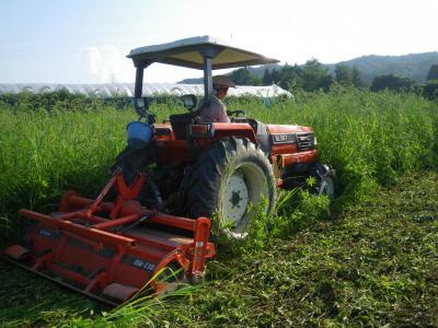 田んぼの手入れ、「溝切り」です。 「中干し」といいますが、詳しくはこちら。 がしかし、、、時期が1ヶ月以上も遅いのです。 お隣あたりでは6月初旬にやってたような。。。 がしかし、溝切りしないと稲刈りのときにぬかって大変だし 知り合いの農家さんに相談したら「今すぐやれっ!!」といわれたので 恥ずかしながら敢行しました。 出穂時期に入っていいのかしら。。。 コシヒカリ 細くて分けつも少ない。 下葉も黄色くなってきた。「肥え切れ」らしい。。。 すでに虫食いの「斑点米」発見! カメムシです。これがあると農協や一般流通にのせられません。 いやはや今年の収穫や如何に?! |