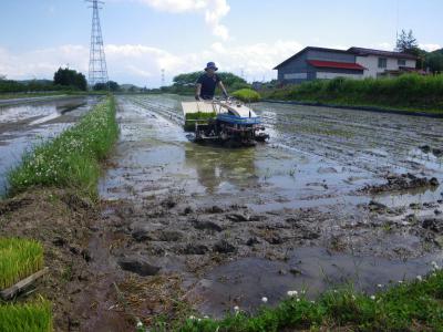 コシヒカリを2反、ヒメノモチを2反、各30枚の苗を使いました。