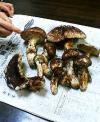この日は20本くらい採って来たそうで、うちも5本くらいおすそ分けしてもらいました。 いや〜デカイのが何本もあって、あんなでかいのは初めて見ました! ビックリした。追加で画像アップします。 香りも味も良かったです。その日はまつたけを炙って食べて、また先日は、栗&まつたけご飯もいただきました。ごちそうさまでした! 採って来たばあちゃんも嬉しそうだっけな〜。 こんなふうに自然の恵みを直に感じられたときって米沢に住んでいて良かったな〜って思うよな〜。 県外の人でも、高畠ではまつたけ会館とかありまして、そこではまつたけ狩りやまつたけの食事なんかも楽しめますし、米沢でもキノコ山組合なるものがありまして、そこで入山許可証(帽子)を購入していただくと、キノコ狩りができるという のもあります。 実は、この日の数日前に、ばあちゃんと二人でまつたけを採りに行ったのですが、 ぜんぜん採れずに二人してがっかりして帰ってきて、んで今回は違う山に行ってしっかり採ってきたんだって。(もちろん所有の山です。) 先日は母親も一緒に行って採って来たらしい。 今度また連れて行ってもらおうかな。 でも、ばあちゃんと初めてキノコ採りに行ったんだけど、急な斜面でも年を感じさせずに元気に山をどんどん登っていくんですよ。最初はばあちゃんが転ばないようになんて後ろから注意してついて行ってたんですが、ぜんぜんそんな心配要らないくらい元気だった。 あんなふうに二人でどこかへ行くというのも久しぶりだったし、元気なばあちゃんを見れたのが、嬉しかったっす。 ...more |