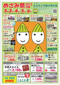 『めざみ祭 2013 GWイベント』を開催します! イベント内容は <3日> ・トンネル点検車体験乗車 10:00〜16:00 ・手作りパン 森のパン屋 10:00〜16:00 ・友機興業 手作りピザ 10:00〜16:00 <4日> ・九里学園高校ダンス部 10:30〜 13:30〜 14:30〜 ・山形大学ジャグリングサークルによる公演 10:55〜 13:55〜 14:55〜 15:55〜 ・手作りパン 森のパン屋 10:00〜16:00 ・友機興業 手作りピザ 10:00〜16:00 ・田舎や どんどん焼き 10:00〜16:00 <5日> ・米沢工業高校伝統文化愛好会による 創作太鼓 10:30〜 13:30〜 14:30〜 ・山形大学ジャグリングサークルによる公演 10:55〜 13:55〜 14:55〜 15:55〜 ・手作りパン 森のパン屋 10:00〜16:00 ・田舎や どんどん焼き 10:00〜16:00 ・Y−1グランプリ優勝! K太郎の手作りピザ 10:00〜16:00 <6日> ・山形大学ジャグリングサークルによる公演 10:55〜 13:55〜 14:55〜 15:55〜 ・CoCo夢や クレープ、どんどん焼き 10:00〜16:00 ・Y−1グランプリ優勝! K太郎の手作りピザ 10:00〜16:00 また、ふわふわ怪獣・海道物産によります物産市は 4日間毎日開催します! ぜひお越しくださいませ!! |