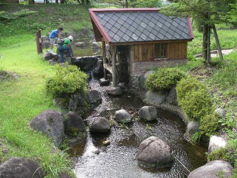 蛍水ふるさと広場は、水車が奏でる『ほたるこい』のメロディーがやさしい大江町の公園(さくら保育園の南側)です。 蛍の餌となるカワニナ(巻き貝の一種)がたくさん生息しています。米沢市小野川から卵を譲り受けて孵化し育てています。
