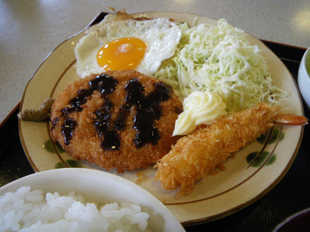 目玉焼きは日の丸。 メンチカツは銅メダル。 加藤条治選手がはまっている やみつき塩キャベツもついてます。